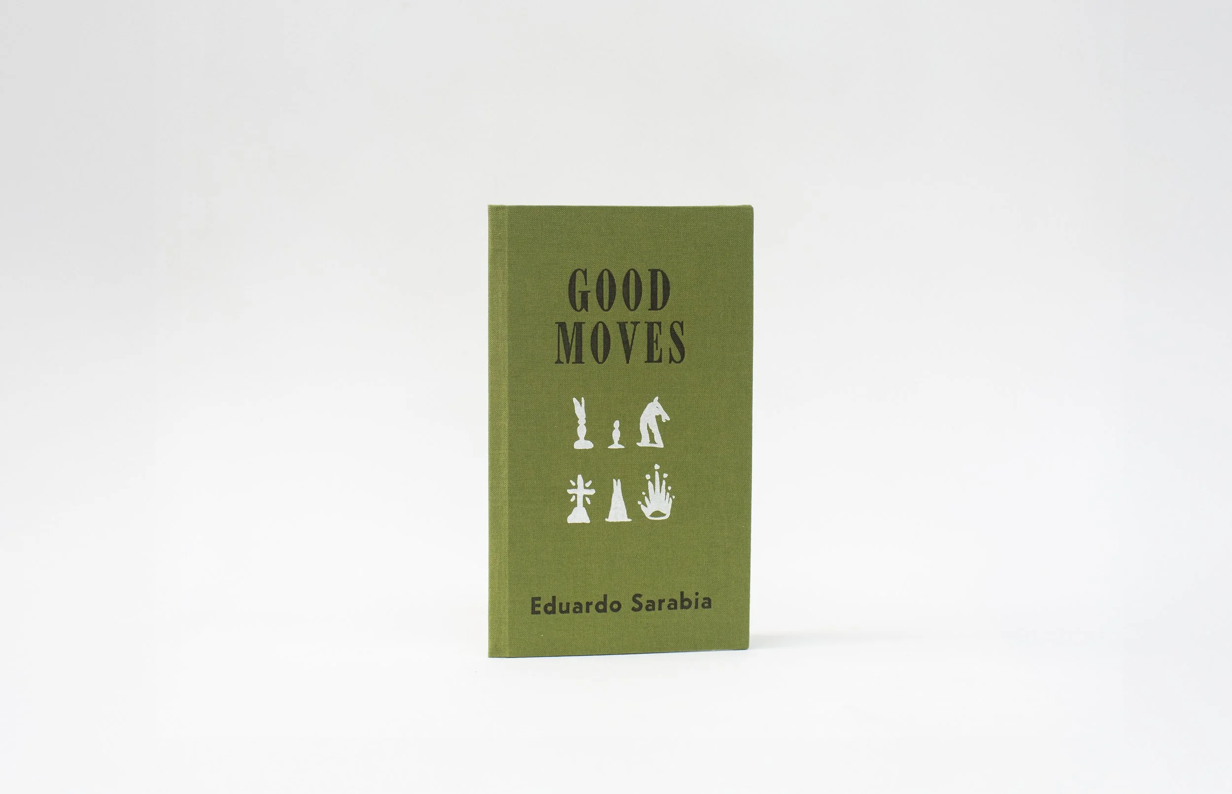Good moves es un libro de artista de Eduardo Sarabia que se despliega como un tablero de ajedrez, donde cada pieza se convierte en un gesto narrativo. A través de este formato lúdico y escultórico, Sarabia traslada su lenguaje visual y simbólico al campo editorial, combinando elementos autobiográficos, ficción y una estética personal.